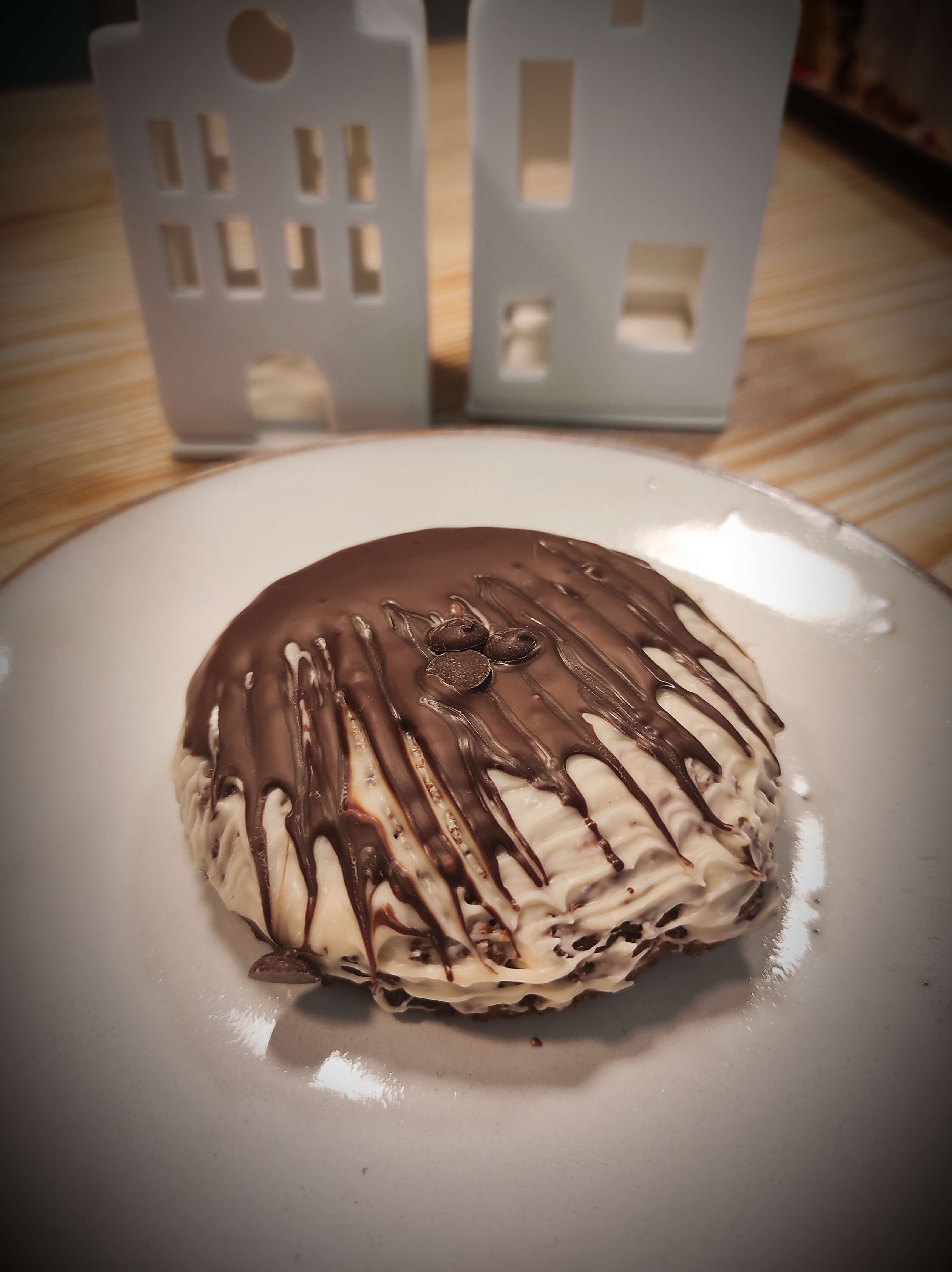 Mit weißer und Zartbitterschokolade glasiert.